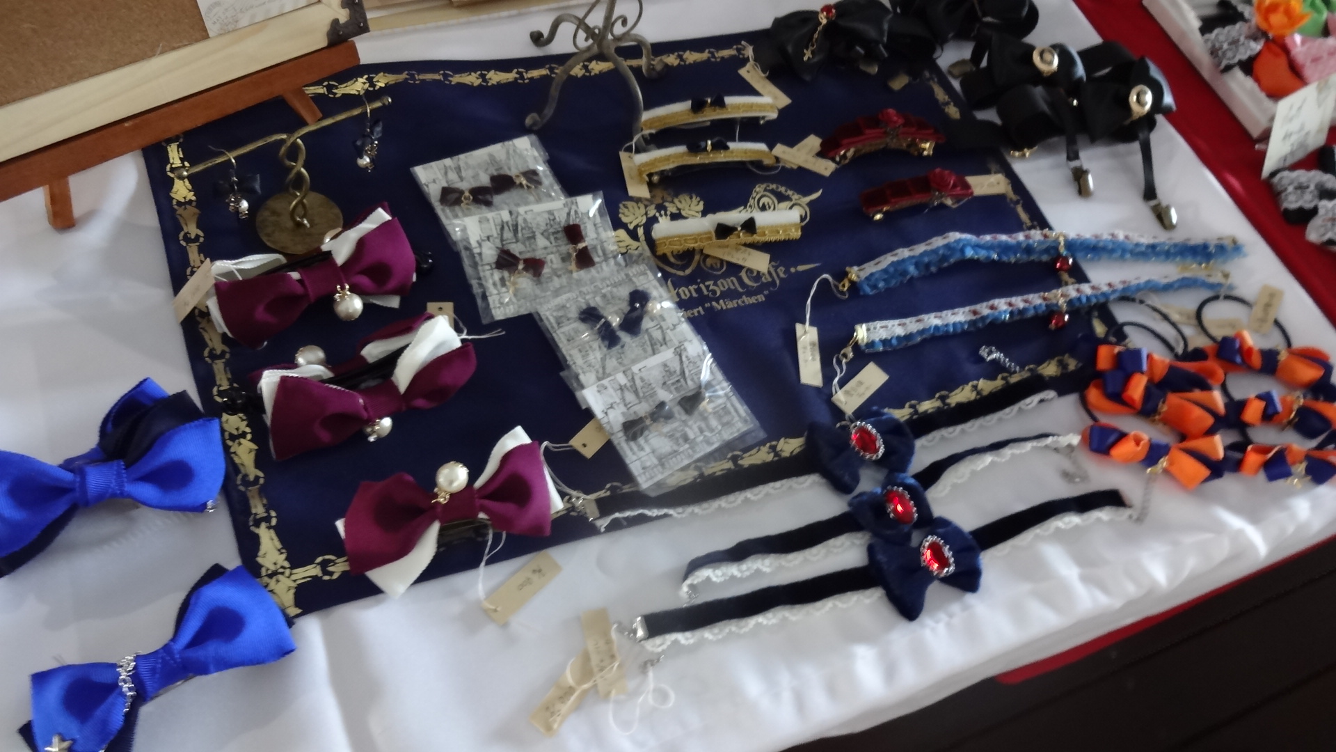 髪飾り多めの紹介になってますが、靴下どめやピアス類のアクセサリーも搬入予定です!